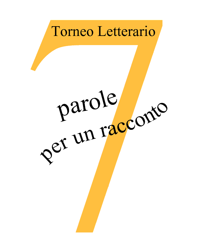 Come potete vedere, il 7 campeggia, perché è il simbolo vero, il succo della sfida: il testo intercetta il numero a mimare il trattino che il numero in questione si porta sempre in dote; in alto, a maggior chiarezza, il “di che si tratta”, cioè un Torneo letterario, una vera disfida. il colore del 7, giallo oro, richiama le cose preziose, come capirete leggendo i racconti pervenuti, che pubblicherò a premiazione avvenuta proprio su questo blog.