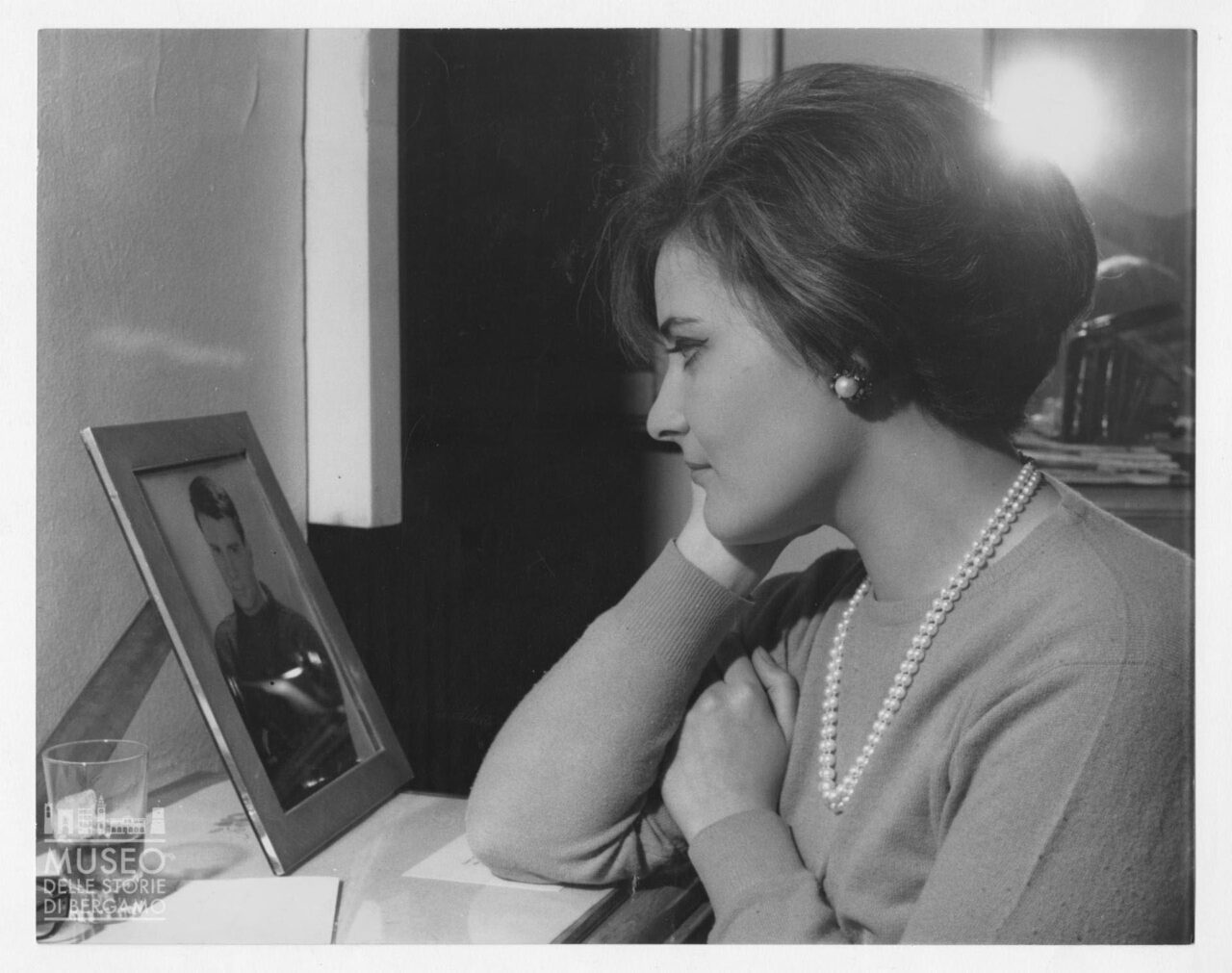 Calogero Carlo Soncini, Ritratto di donna di profilo, fine anni Sessanta, gelatina ai sali d’argento su carta, 24×30 cm. © Calogero Carlo Soncini – Museo delle storie di Bergamo, Archivio fotografico Sestini, Raccolta Domenico Lucchetti, inv. n. SON-317.