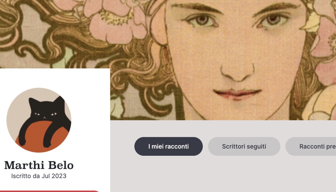 Non dimenticare poi che ne Il mio profilo puoi trovare tutto quel che hai realizzato sul portale: i tuoi racconti e i voti, i premi, gli scrittori che segui – con gli ultimi loro racconti pescati in automatica – i tuoi racconti preferiti, che puoi salvare con click sul cuore. Insomma, l’invito è quello di farci un giro e personalizzare il tuo profilo come ti pare.