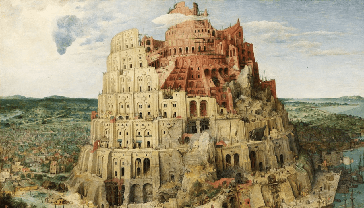La sezione del testo che abbiamo scelto sovverte la storia di Babele, o meglio di Bab-Ilu (con la sua ziqqurat Etemenanki, che aveva sette livelli). Come sempre, trovate il PDF nella sezione Il mio profilo del portale, alla voce Biblioteca del 7Parole.