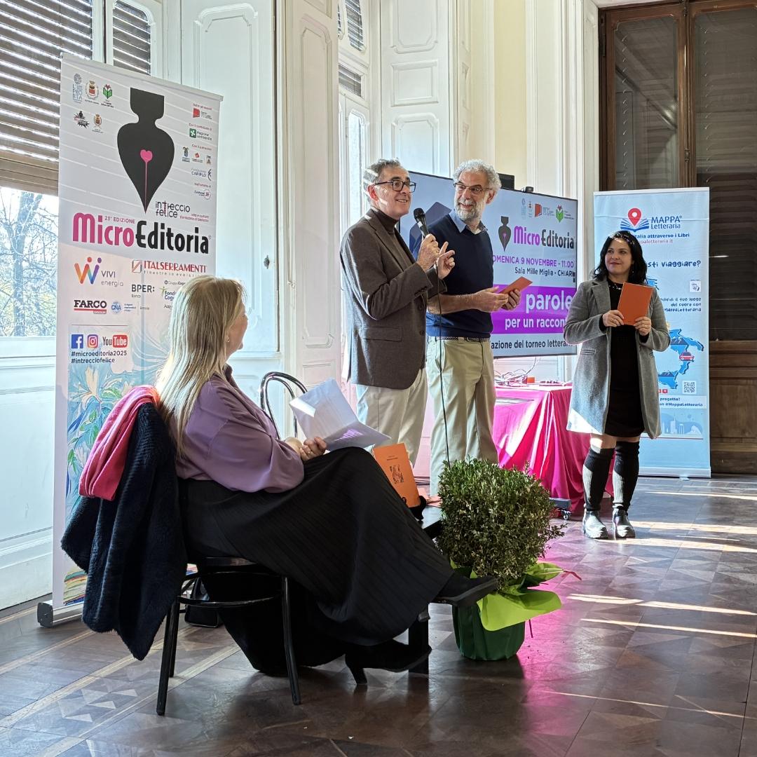 Già, che bell’incontro ieri alla Rassegna della Microeditoria. Affettuoso, caldo, emozionante. Il nostro Presidente, Claudio Calzana, ha condotto le danze, Maria Tosca Finazzi ha letto una trentina di racconti dalle ultime sfide, Andrea Rizzini e Annamaria Gallo si sono prodigati in regia.
